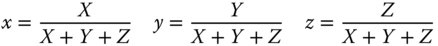 From the preceding arguments, the Y tristimulus value is a measure of the luminance of the source. Normalisation of the tristimulus values provides a two dimensional description of colour.