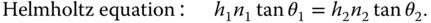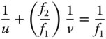 As we will be able to show later, the ratio f2/f1 is equal to the ratio of the refractive indices, n2/n1, in the two media (object and image space). Therefore it is possible to cast the above equation in its more usual form, the Helmholtz equation: