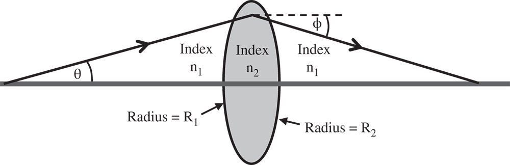 Figure 1.14 Refraction by two spherical surfaces (lens).