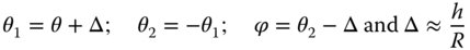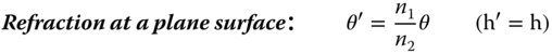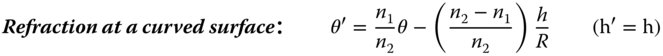 If we now assume that all rays are confined to a single plane containing the optical axis, then we can describe all rays by two parameters: θ – the angle the ray make to the optical axis and h – the height above the optical axis. If, after transformation by an optical surface, these parameters change to θ′ and h′, it is possible to write down a series of linear equations describing all transformations. These are set out in Eqs. 1.18–1.21: