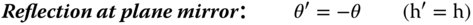 Figure 1.15 shows the process of reflection at a plane surface. As in the previous case of refraction, the reflected ray lies in the same plane as the incident ray and the angle of reflection is equal and opposite to the angle of incidence.