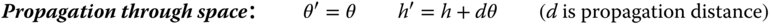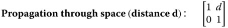 Even the most complex optical system may be described as a combination of all the above elements. At first sight, therefore, it would seem that this provides a complete description of the first order behaviour of an optical system. However, there is one important, but seemingly trivial, aspect that is not considered here. This is the case of ray propagation through space. The equations are, of course simple and obvious, but we include them for completeness.