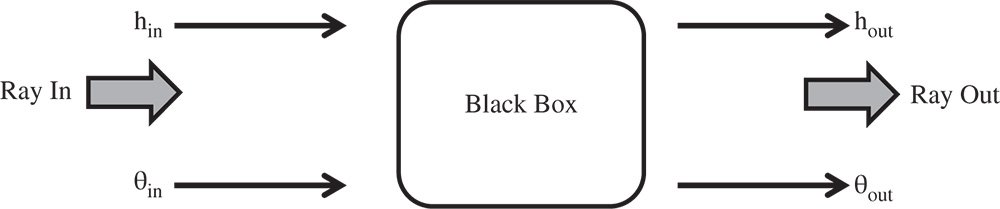 Following the basic premise of Gaussian optics, we can relate the input and output rays using a set of linear equations:
