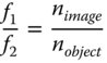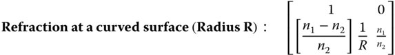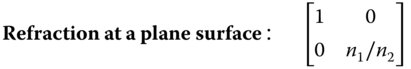 Inspecting all matrix expressions in Eqs. (1.27a–1.27f), the determinant of the matrix is simply n1/n2, the ratio of the indices in the two media, for all possible scenarios. Since the determinant of a matrix product is simply the product of the individual determinants, then the determinant of the overall system matrix is simply the ratio of the refractive indices in image and object space. Thus: