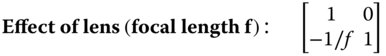 As both object and image space are in the same media, there is a common focal length, f, i.e. f1 = f2 = f. All relevant parameters are calculated from the above matrix using the formulae tabulated in Section 1.6.2.