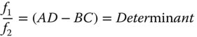 The determinant of the matrix, (AD−BC), is a key parameter. The ratio of the two focal lengths of the system is simply given by the determinant. That is to say the ratio of the two focal lengths is given by: