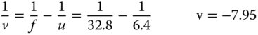 It is easiest, first of all, to calculate the position of the exit pupil, as this is the stop imaged by a single lens (the third lens) of focal length 32.8 mm. The position of the aperture stop, the object in this instance, is 6.4 mm to the left of this lens. The distance, v, of the exit pupil from the third lens is therefore given by:
