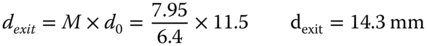 Thus, the exit pupil is 7.95 mm to the left of the third lens and 8.05 mm from the origin. The magnification is given by (minus) the ratio of image and object distances and so it is easy to calculate the size of the exit pupil: