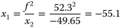 The imaged pupil or exit pupil lies in image space, 8.05 mm from the origin. This is 49.65 mm to the left of the second focal point. In applying Newton's formula, the second focal distance, x2 is then equal to −49.65. We can now calculate the first focal distance to determine the position of the entrance pupil.