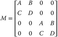 In this two dimensional representation, the matrix element representing each optical element would be a 4 × 4 matrix instead of a 2 × 2 matrix. However, the matrix is not fully populated in any realistic scenario. For a rotationally symmetric optical system, as we have been considering thus far, there can only be four elements: