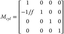 That is to say, the impact of each optical surface is identical in both the x and y directions in this instance. However, there are optical components where the behaviour is different in the x and y directions. An example of this might be a cylindrical lens, whose curvature in just one dimension produces focusing only in one direction. The two dimensional matrix for a cylindrical lens would look as follows: