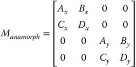 A component that possesses different paraxial properties in the two dimensions is said to be anamorphic. A more general description of an anamorphic element is illustrated next: