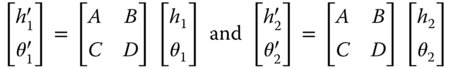 The introduction of two distinct sets of ray fans, tangential and sagittal, together with the inclusion of skew rays confirms that sequential ray propagation in an axial geometry is essentially a two-dimensional problem. Hitherto, all discussion and, in particular, the matrix analysis, has been presented in a strictly one-dimensional form. However, the strict description of a ray in two dimensions requires the definition of four parameters, two spatial and two angular. In this more complete description, a ray vector would be written as: