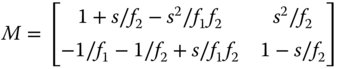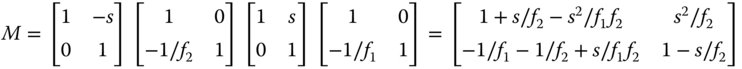 The separation, s, is simply the sum of the two focal lengths and the system matrix is given by: