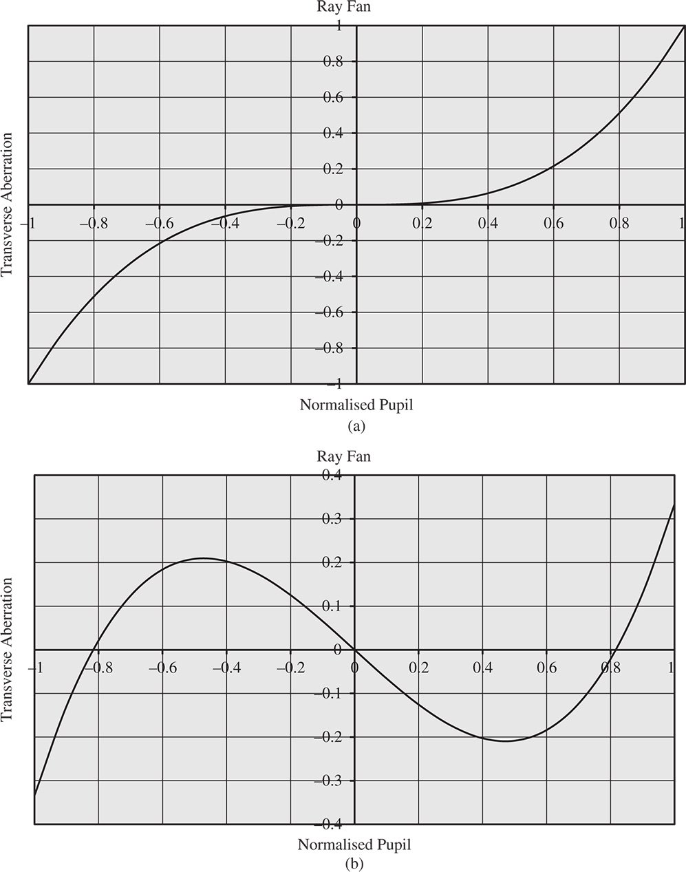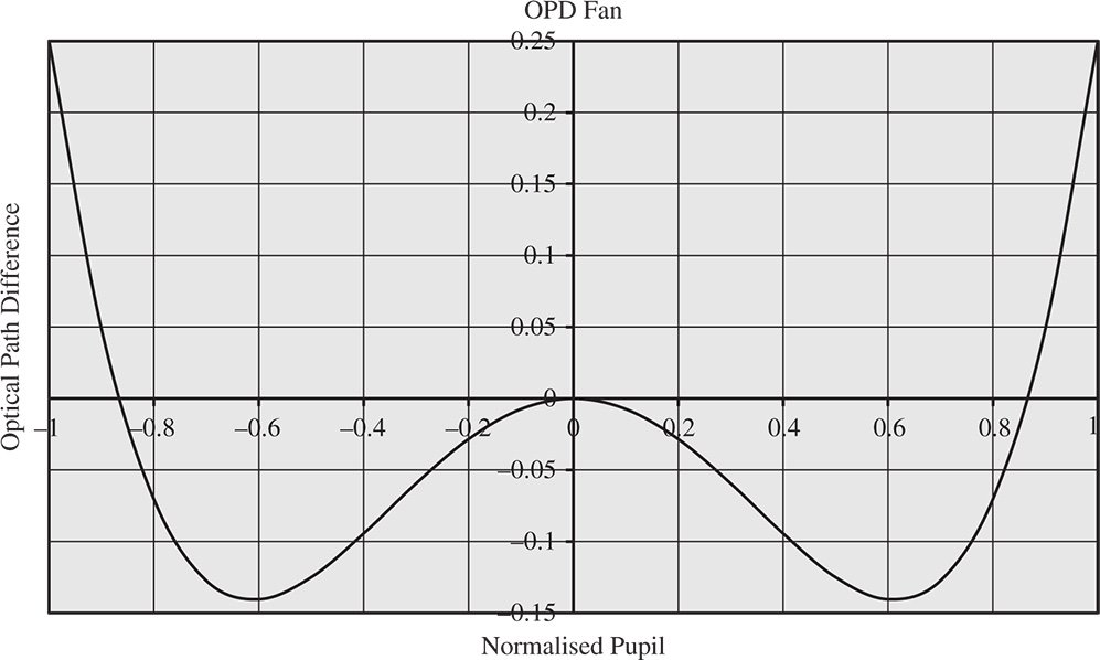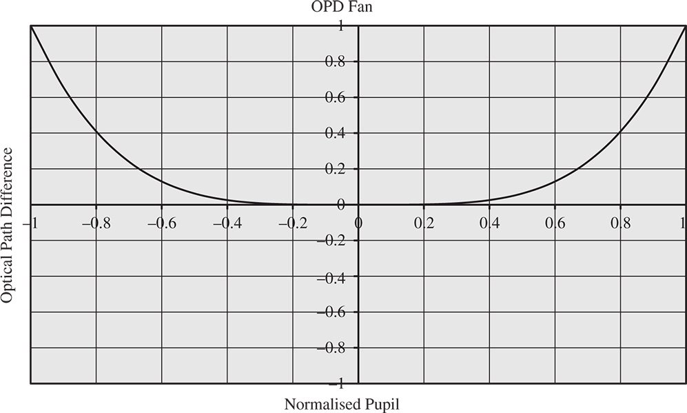 Figure 3.8 shows a plot of the OPD against the normalised pupil function; such a plot is referred to as an OPD fan.