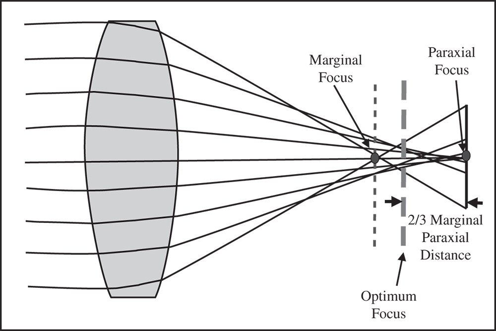 Figure 3.4 Balancing defocus against aberration – optimal focal position.