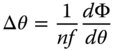 We now describe the WFE, Φ, as a function of the reference sphere (paraxial ray) angle, θ. The radius of the reference sphere (distance to the paraxial focus) is denoted by f. This allows us to calculate the difference in angle, Δθ, between the real and paraxial rays. This is simply equal to the difference in local slope between the two surfaces.