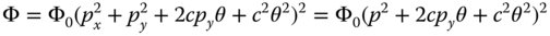 Thus, by the argument presented here, any third order aberration may be represented by a pupil dependence of p4 augmented by a shift in the y component of the pupil function, Δpy that is proportional to the field angle, θ. This is set out in Eq. (3.18), which describes the WFE, Φ, in terms of θ, p, and py. From this point, we use WFE, rather than OPD as the key descriptor, as we are describing OPDs across the entire pupil. The offset pupil is now denoted by p′