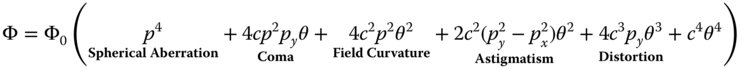 In this section we will describe each of the fundamental third order aberrations in turn. Re-iterating Eq. (3.20) below, it is possible to highlight each of the aberration terms: