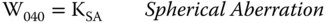 In the general term, Wabc, ‘a’ describes the order of the object height (field angle dependence), ‘b’ describes the order of the pupil function dependence and ‘c’ describes the dependence on the ray fan angle. The defocus and tilt, are of course paraxial terms. Overall, the dependence of each coefficient is given by Eq. (3.45):