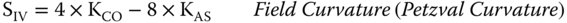The form of Eq. (3.54) is interesting. When compared to the definition of W220 in Eq. (3.48), an additional amount of astigmatism has been compounded with the field curvature. As such, this new representation of field curvature, SIV represents a fundamental and important property of an aberrated optical system and is referred to as the Petzval curvature. Its significance will be discussed more fully in the next chapter.