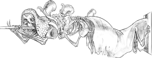 Он подтянул к своим зубам одну из бесчисленных труб, издал в неё звук, похожий на кашель, а затем крикнул: