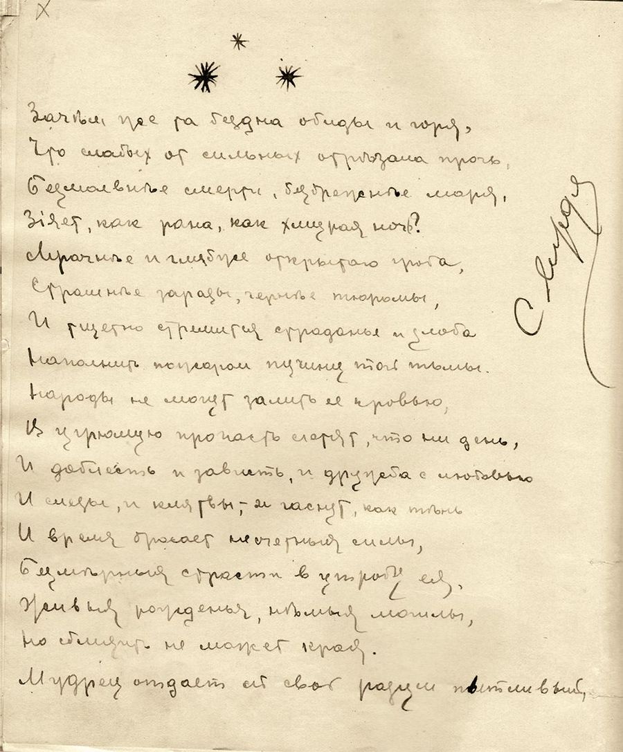 Тюремная тетрадь Я. М. Свердлова. Стихи юный романтик революции тоже любил, возможно и писал сам. Тексты, как и положено арестанту, жалобные: «зачем же та бездна обиды и горя, что слабых от сильных отрезала прочь…». 14 мая – 14 июня 1903 года. Подлинник. Автограф