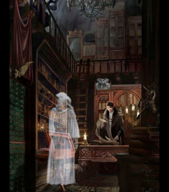Марвин сидел в библиотеке, с ногами забравшись в глубокое кресло. Перед ним на большом массивном столе лежали несколько свитков и толстая книга с пустыми листами. Рядом стояла большая чернильница, сделанная в виде пузатой бутылки, из которой торчало длинное черное перо. Марвин только что закончил записывать понра-вившееся ему заклинание в книгу. Ради эксперимента он решил проверить действенность этого самого закли-нания на натуре. Вложив побольше Силы Марвин прочел вслух заученное наизусть заклинание. И стал ждать результата, который не замед-лил сказаться. Посреди библио-теки возник призрак мужчины, одетого по моде позапрошлого века. Призрак «посмотрел», если можно так сказать, на сидевшего в кресле парня и заговорил. В тишине библиоте-ки раздался шелестящий тихий голос: – Ты, на правнука моего похож. Но, ты, не он. Кто, ты? У кого из моих перепуганных до икоты потомков хватило сме-лости сунуть нос в мои свитки.