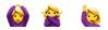 – очень часто встречающаяся девушка в фиолетовом. Её жесты означают ОК (руки над головой), «нет» (скрещённые руки), «привет» или «я знаю ответ» (поднятая вверх рука). У этого персонажа есть ещё одна поза, которая многих ставит в тупик —