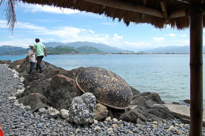 Это был город Нья-Чанг – морской курорт на побережье Южно-Китайского моря: мы приехали сюда, чтобы на роскошном белопесчаном пляже предаться сладкому ничегонеделанию после насыщенной программы фестиваля в Хуэ. Однако прежде чем мы начали беспечно наслаждаться морем и южным солнцем, нам пришлось самостоятельно решить несколько организационных вопросов, как-то: заселиться в гостиницу, отыскать поблизости недорогую забегаловку, ну и найти какой-нибудь продуктовый магазин, чтобы запастись нехитрым провиантом на пару дней вперед.