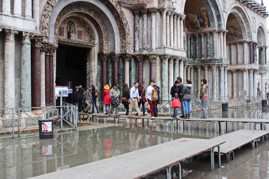 Поплутав в темноте по незнакомой местности, мы преодолели гигантский аркообразный виадук и вышли к набережной. На итальянский язык понятие «набережная» переводится словом fondamenta: в самом звучании его – фундаментальность, незыблемость, глубина, основа. Так как отныне нам предстояло повсюду передвигаться по воде, мы изучили на причале несложную схему движения vaporetto (венецианского речного трамвайчика) и отправились в первое путешествие по городским каналам – в один из старейших районов города Каннареджо. Там располагалась гостиница «Три арки», где нам предложили поселиться. Оказалось, отель стоит прямо у причала, буквально в трех метрах от канала. Немудрено, что по утрам, после ночных приливов, высокое гостиничное крыльцо было мокрым, а набережную заливала вода, вышедшая из берегов. Венецианцев, носящих дорогую и элегантную обувь, это не напрягало, ну а нас и подавно. Наоборот, было весело ходить по деревянным настилам, которые сооружали специально на случай небольшого затопления.