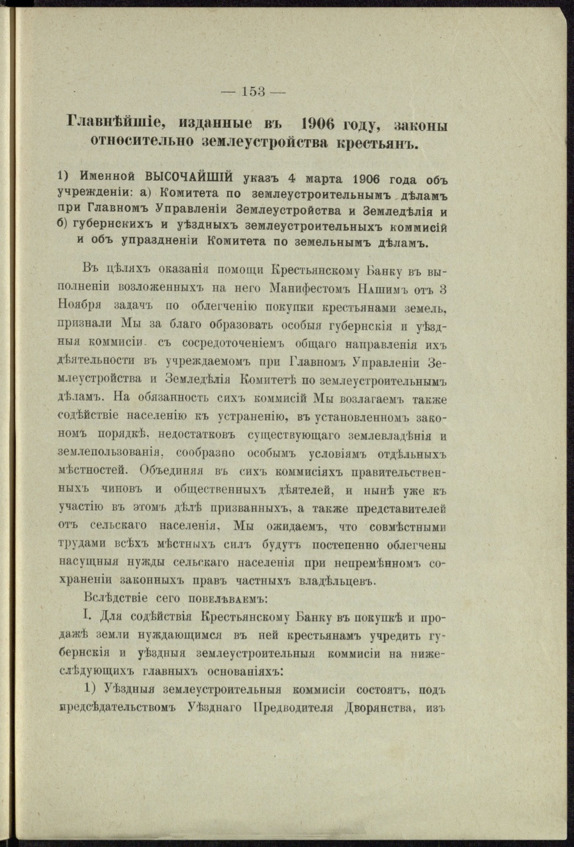 В 1906 году был создан Комитет по землеустроительным делам, а также губернские и уездные землеустроительные комиссии, которые состояли в ведении Главного управления землеустройства и земледелия. Денежные суммы на содержание землеустроительных комиссий и оказание помощи переселенцам были увеличены.3