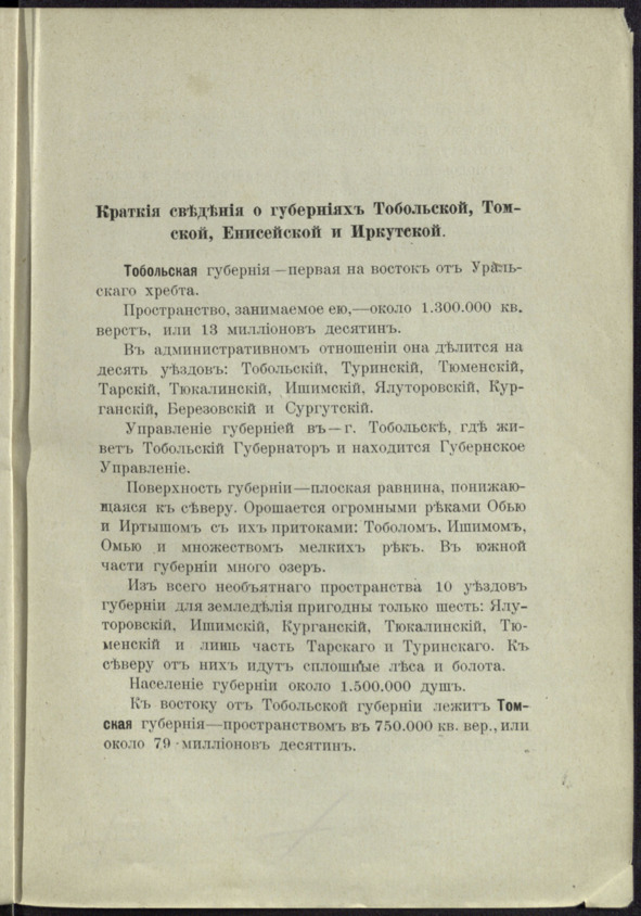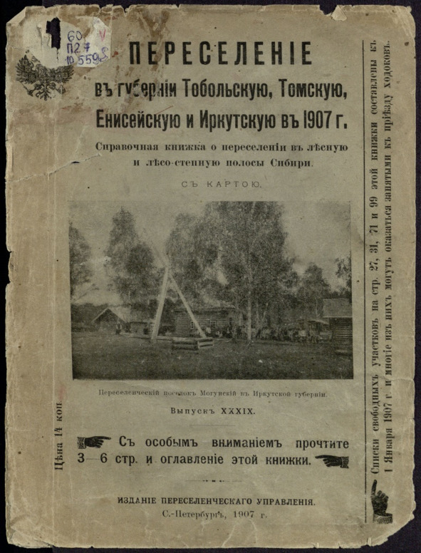 Переселение в губернии Тобольскую, Томскую, Енисейскую и Иркутскую в 1907 г