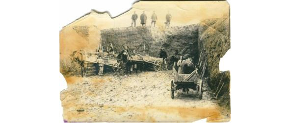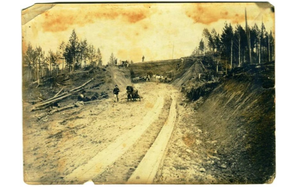1909 год. На строительстве Нихворского участка пограничной дороги Туринского уезда. Строители на подводах вывозят глину для уплотнения заболоченных мест, встречающихся при строительстве дороги.14