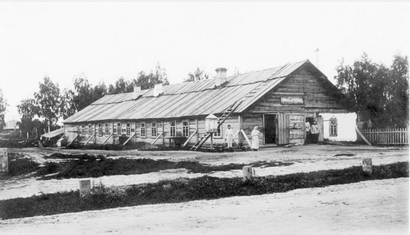 Здание канцелярии. Здесь регистрировались все пребывающие и проходящие через станцию переселенцы, 1909—1919, Челябинск