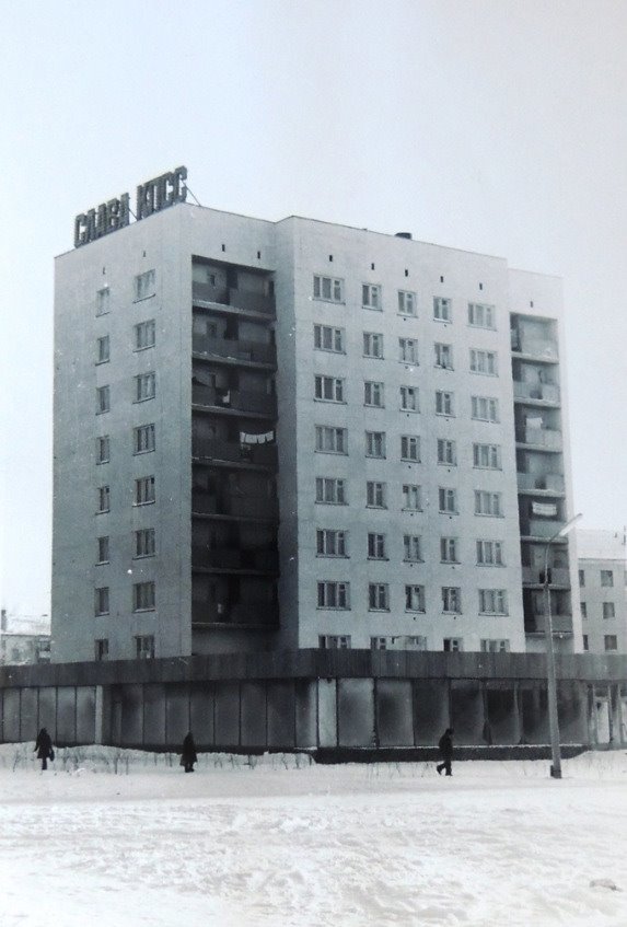 За баннером почтовое отделение, где мы с мамой получали учебники, посланные тётей Нэллей к моему поступлению в 1 класс (они пришли только 31 августа 1977 года.)