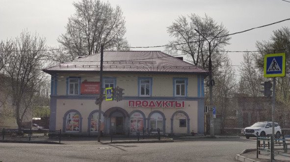 Магазин «Треугольник», на первом этаже которого, справа был отдел с соком. На прилавке стояли емкости с краниками, и продавец наливала сок. Мама покупала мне самый дорогой – по 25 копеек – гранатовый, 10 копеек стоил томатный, 15 – яблочный. Слева был отдел с крупами, но конечно же в этом отделе самым главным был такой товар, как конфеты, чай и халва. На втором этаже продавали ткани, и всякие товары лёгкой промышленности. Вход на второй этаж был со двора. Окна – большие и прозрачные, не испорченные рекламой. Светофоров и металлических заборов не было.