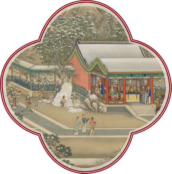 «Празднование Нового года императором Цяньлуном» (乾隆帝岁朝行乐图). Джузеппе Кастильоне. Эпоха Цин. Музей Гугун, Пекин