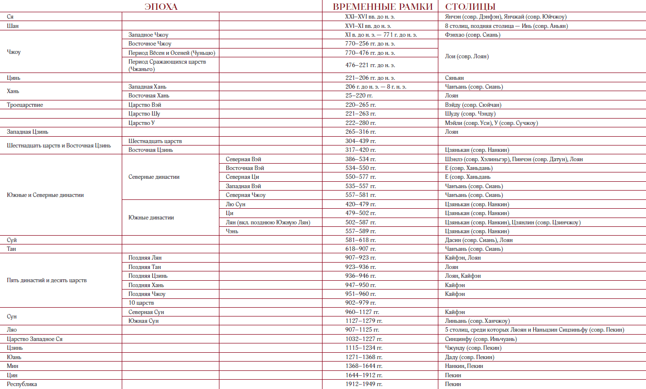 Данная глава закладывает фундамент в процесс построения целостного образа Китая. Прочитав её, вы узнаете, на какие эпохи делят китайскую историю, как и по каким причинам происходила смена правящих династий, в какое время жили великие личности и совершались грандиозные открытия. Мы начнём с первых китайских государств, возникших в бассейне реки Хуанхэ, и завершим периодом создания Китайской Народной Республики. Чтобы путешествие напоминало увлекательную экскурсию сквозь время и пространство, текст сопровождают карты, таблицы, изображения культурных реликвий и портреты известных персон.