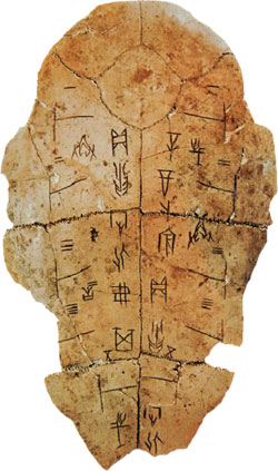 Черепаший панцирь с гадальной надписью. Музей руин Иньсюй