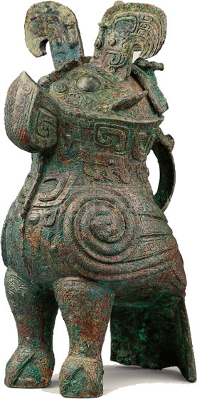 Бронзовый сосуд в виде совы, обнаруженный в гробнице Фу Хао – одной из жён шанского правителя У Дина. Согласно записям цзягувэнь, она была верховной жрицей и талантливым полководцем. Её гробница с большим количеством сокровищ и оружия найдена на раскопках древнего города Инь. Национальный музей Китая, Пекин