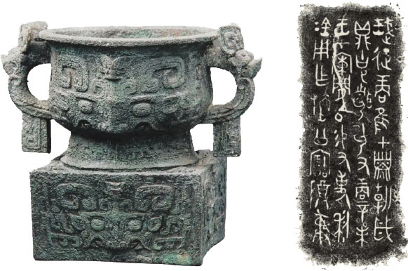 Бронзовый сосуд лигуй (利簋), на дне которого выбита надпись, сообщающая о победе У-вана, основателя Чжоу, над войсками царства Шан. Национальный музей Китая, Пекин