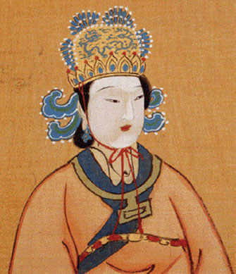 В эпоху Тан верховную власть смогла принять в свои руки амбициозная женщина У Цзэтянь. Сначала она правила от лица ослабшего от болезни мужа, императора Гао-цзуна, после его смерти меняла на троне сыновей, а позже решила стать единоличной правительницей Поднебесной. В 690 г. У Цзэтянь взяла себе мужской титул императора «хуанди» и основала династию Чжоу. Правда, просуществовала Чжоу только 15 лет. В 705 г. пожилая У Цзэтянь вынужденно передала престол сыну Ли Сяню, который восстановил династию Тан. Портрет У Цзэтянь. Неизвестный художник. Лоянский музей