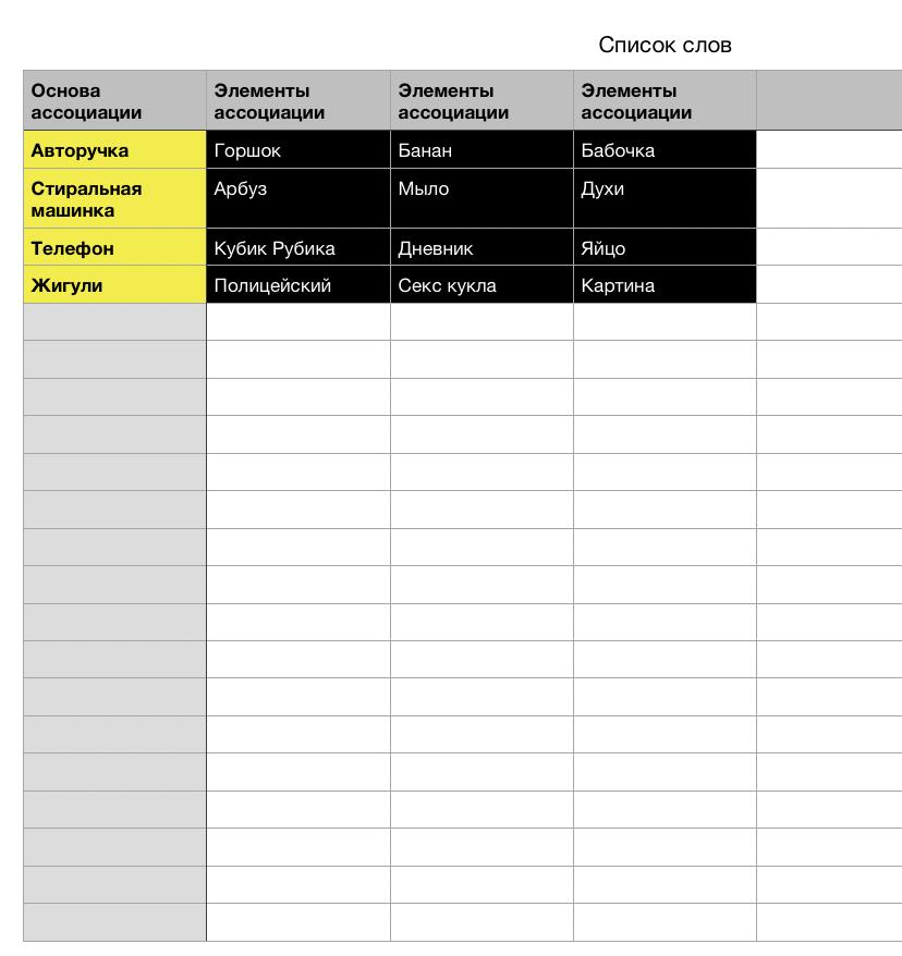 А теперь попробуйте потренироваться и закрепить знания воспользовавшись методом «Искусственных ассоциаций» на примере таблицы со словами.