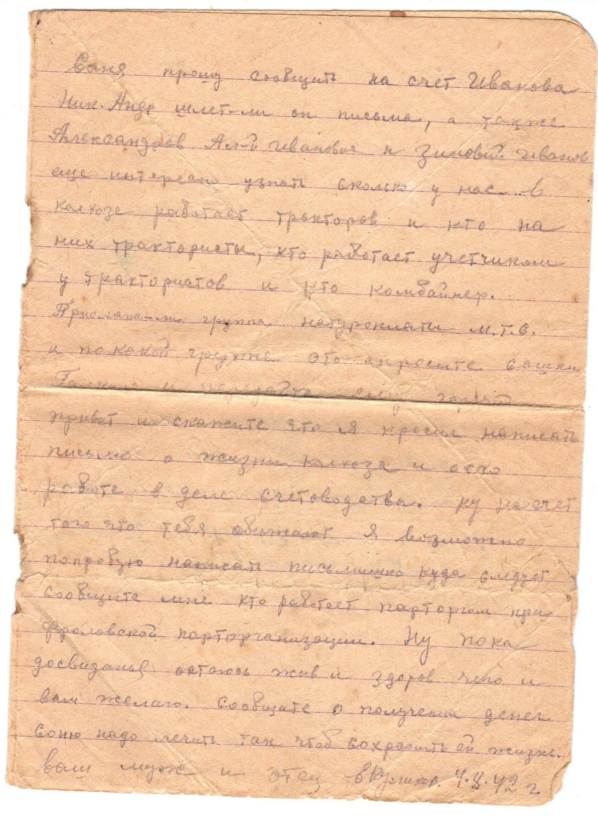 Письмо девятое, страница вторая (19. 07. 1942г.)