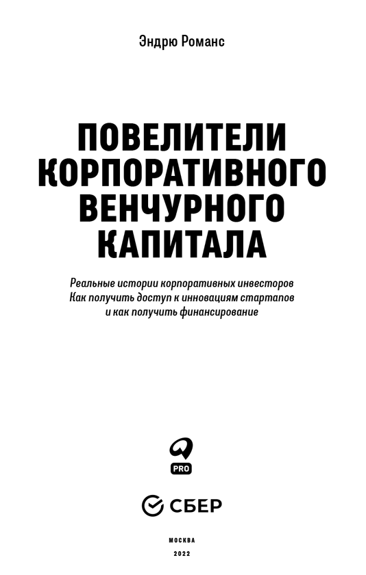 Лично я являюсь выходцем из уникальной среды: был инвестором и генеральным директором компании Intel Capital, входящей в структуру Intel и работающей в области CVC; консультантом, работавшим с крупными корпорациями в области создания отделений CVC; венчурным инвестором и президентом компании, получавшей инвестиции от CVC. Я изучил корпоративный венчурный капитал со всех возможных ракурсов и верю в то, что книга «Повелители корпоративного венчурного капитала» поможет вам разобраться в заявленной теме наилучшим образом.
