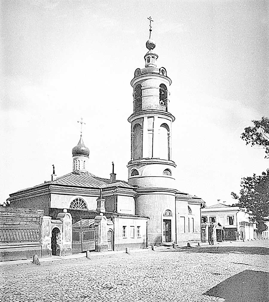 Название Спиридоньевского переулка, как и соседней улицы, было дано по стоявшей на углу с улицей Спиридоновка церкви Св. Спиридона, построенной в 1633–1639 гг. патриархом Филаретом в его патриаршей слободе «на Козьем болоте». Посвящение придела святому Спиридону (главный престол в этой церкви – Рождества Богородицы) объяснялось тем, что святой был в юности пастухом, а в слободе, надо думать, разводили коз и иную домашнюю живность. Церковь, как обычно бывало с увеличением прихода, стали переделывать и в 1821 г. пристроили большую трапезную и красивую колокольню. Все было сломано в 1930 г., и на этом месте трест «Теплобетон» выстроил в 1932–1934 гг. жилой дом (№ 1/24) с барельефами, представляющими Технику, Искусство и Науку. В нем жили палеонтолог А. А. Борисяк, зоолог С. А. Зернов, физик Б. М. Вул и другие известные ученые.
