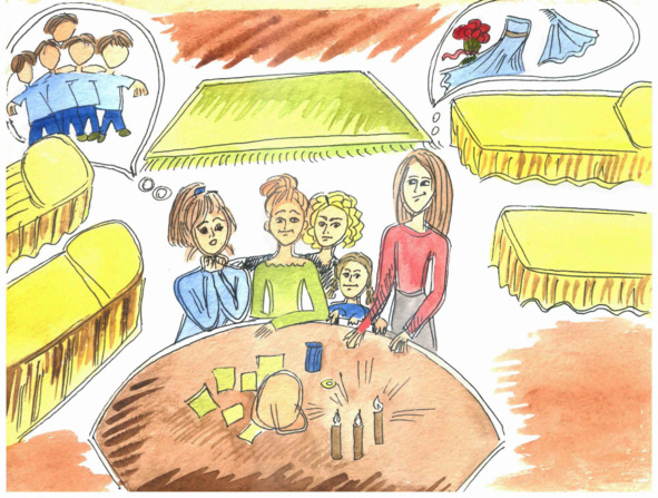 На рождественские праздники мы гадали. Во мне живут суеверия. Я верю в карму. Настолько верю, что иногда готова поспорить с теми, кто считает это чушью. Всегда охотно принимала участие в гаданиях, мне нравилась уютная теплота нашей комнаты, когда все девочки собирались вместе, объединённые общим желанием узнать про любовь. Мы жили в общежитии, поэтому компания у нас была довольно большая. Таня усмехалась тогда с нашей наивности и отворачивалась спать к стене: она скептик. Мы ей нагадали пятерых сыновей случайно.