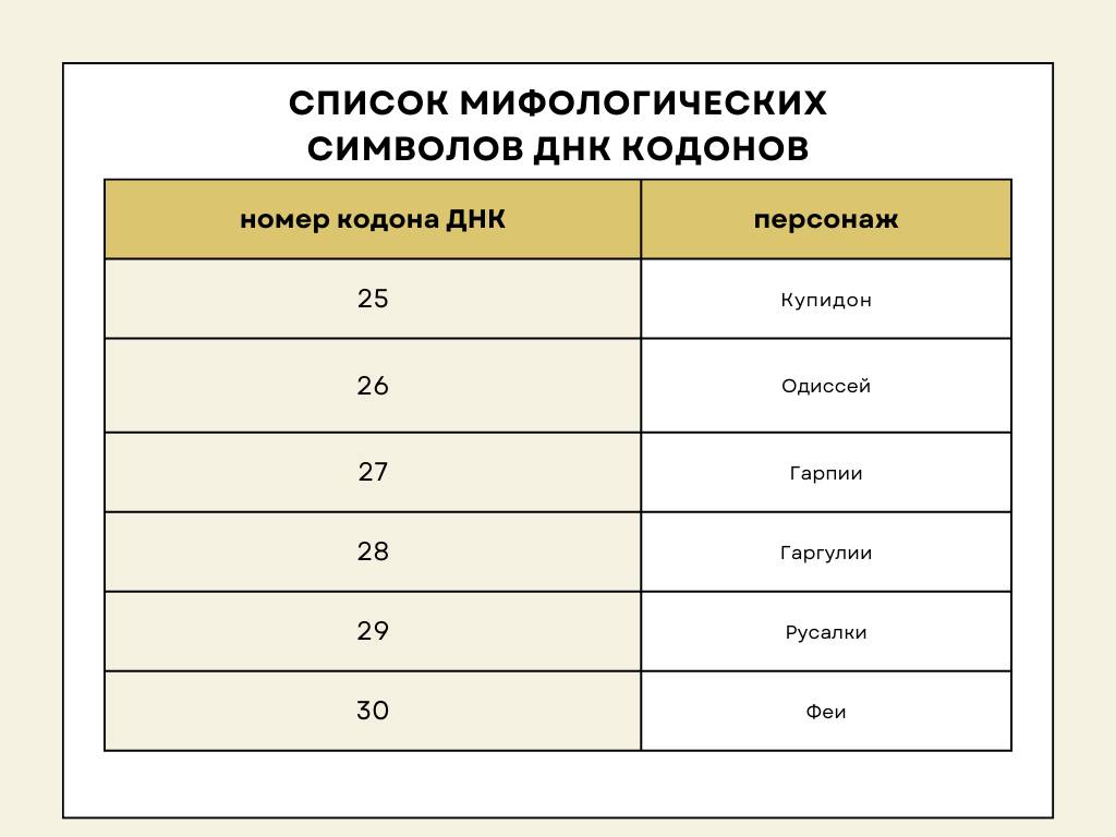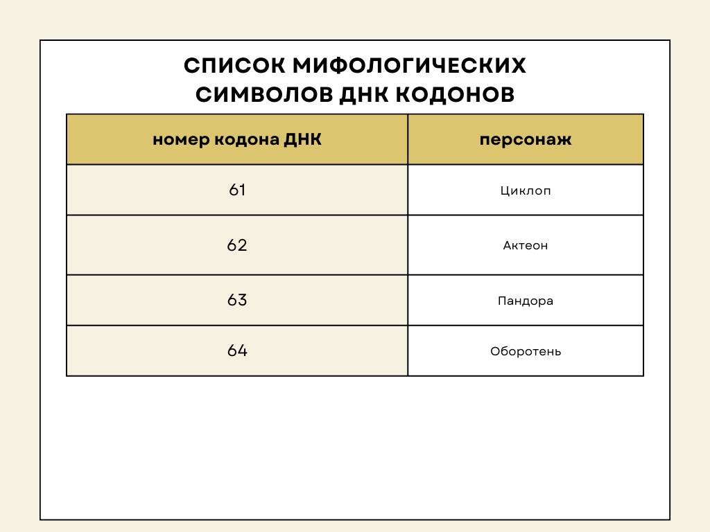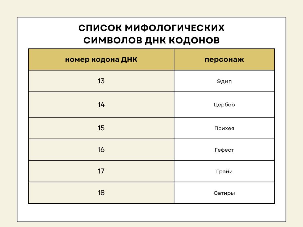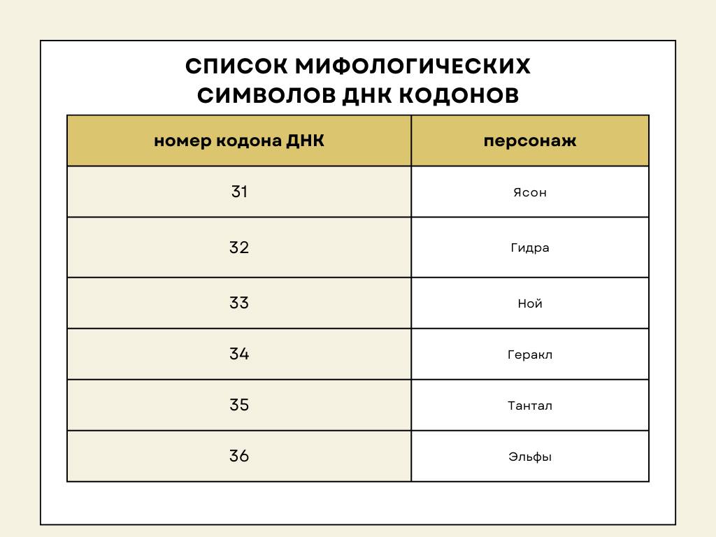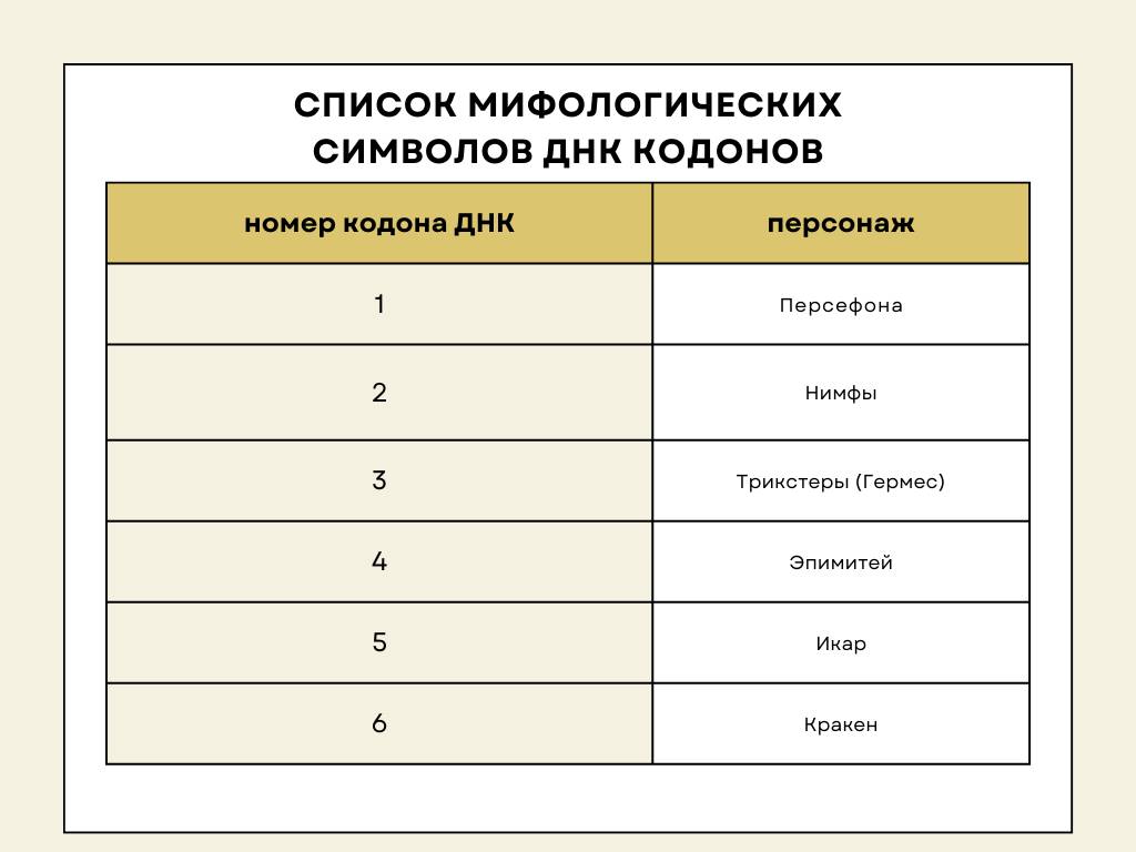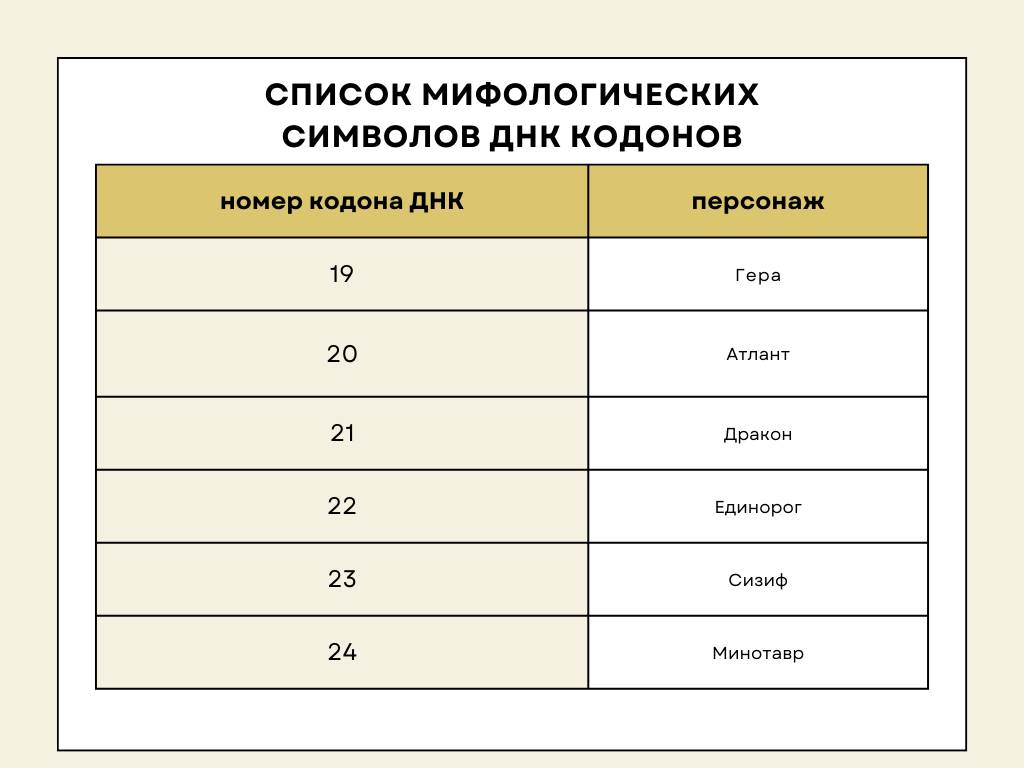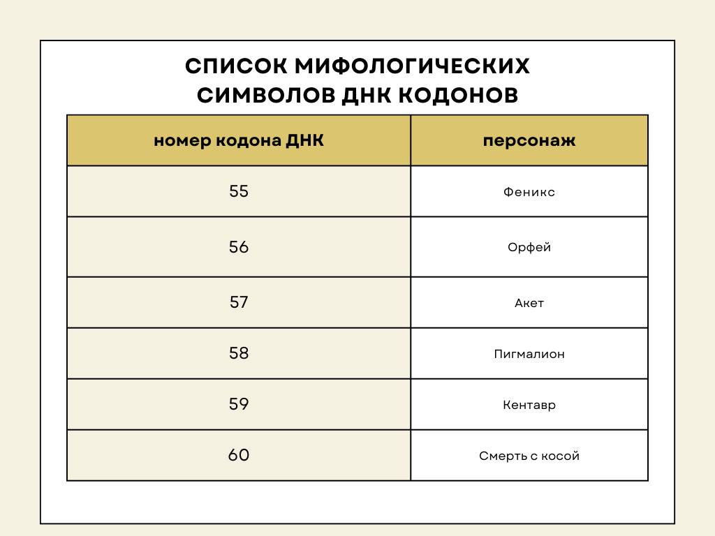 Таблица мифологических символов 64 ворот по Дизайну Человека