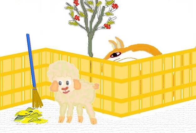 А лиса в это время проходила мимо забора, за которым пел такой мягонький, такой пушистенький и сладенький ягненочек. Лиса даже закрыла глаза и облизнулась, но увидев на крыльце бабушку Рози, она пошла себе дальше.